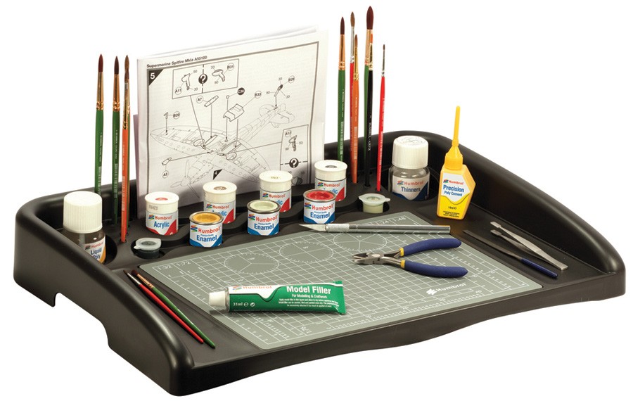 Box contains AG9156 Humbrol Work Station only. All other Humbrol products shown are not included. A must for every modeller. The Humbrol Workstation is manufactured from a tough and durable material that can’t be melted by Humbrol Poly Cement.