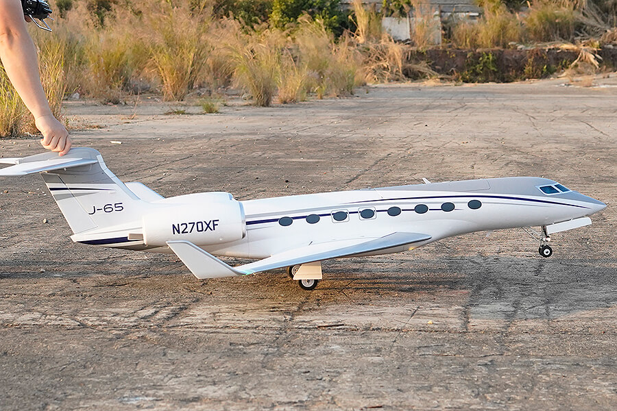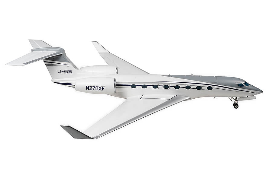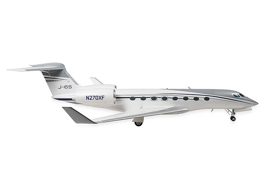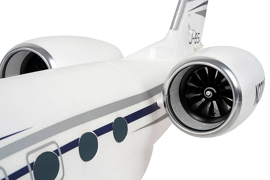 XFly Model is proud to release our first business jet, the J-65 Twin 70mm EDF jet! This jet was developed with all the attention to design and detail that we’ve come to expect – a scale outline and trim scheme, rivet window frame, full compliment of LED’s, removable winglets, scale landing gears and gear doors, removable nacelles, etc. All these scale features make the J-65 jet more like a collection!