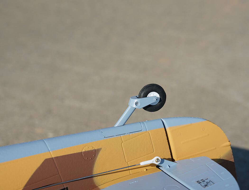The large battery hatch can accommodate a 4S 2600-4000mAh LiPo battery for a wider range of flight times. The combination of a 3541-KV745 motor and a 40A brushless ESC offers plenty of power and achieves excellent thrust-to-weight ratio for a satisfying scale performance. Metal main landing gear with shock absorbing struts and efficient electric retracts deliver outstanding ground handling performance. The flap design on this model uses four panel split flaps for easier take-offs and landings, akin to its full-size counterpart. Day-bright LED wingtip lights aid in visibility and add realism.