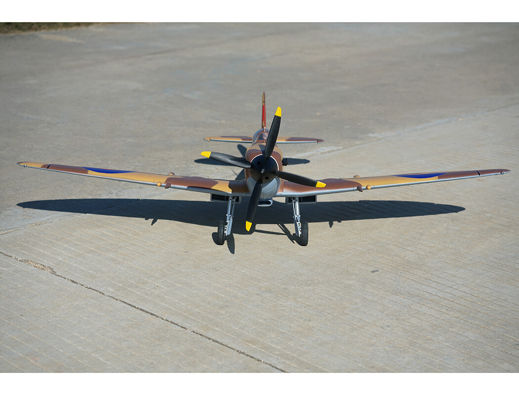 Choose between the desert brown edition that featured in combat in North Africa and the Mediterranean circa 1943 or the green D-Day Invasion of Europe from 1944, piloted by Canadian Ace Johnnie Johnson. Whatever you choose, this iconic stunner is ready to impress at your flying field!