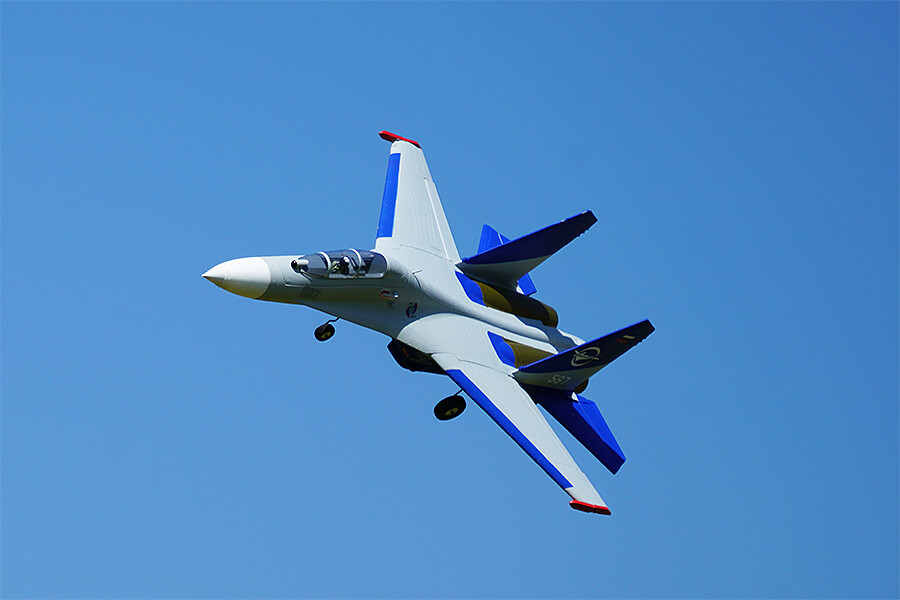 The new XFly Su-27 Twin 50mm EDF jet is a scale replica of Sukhoi fighter that has excellent performance in power, speed and maneuverability. Twin high-power 12-blade 50mm EDFs and 40A ESCs with your 4S 2200-3000mAh battery deliver an incredible air superiority fighter experience. At the meantime, you can hardly imagine how incredible turbine-like sound this small sized jet produces!
